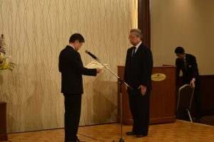 冒頭、松村会長から挨拶があり、「この十数年間に県内各地で大規模な災害が発生したが、その度に会員は復旧復興に尽力してきた。防災減災・国土強靭化に伴うインフラ整備を通して県土と県民の生命・財産を守ることが協会の使命である。引き続き防災減災・国土強靭化の予算確保ができるよう関係機関に対しても働きかけていく。前年度の役員改選で役員も若返り、各委員長を中心に様々なことに取り組んできた。今年度も各会員が技術の研鑽やスキルアップができるようさらに努めていきたい。会員各社の協力をお願いしたい」と呼び掛けました。