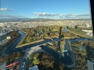 二日目は、宿泊していた湯の川温泉の始まりとされる「湯倉神社」へ参拝したあと、再び五稜郭にて平成22年に復元された函館奉行所の内部を管理者の方にご説明頂きながら見学をしました。函館奉行所の城郭として当時最新だった西洋式城郭を設計に取り入れて五稜郭は建設されたそうで、函館奉行所が7年しか存在しなかったため、幕末の戦場というイメージの方が強くなったという説明を受け、確かに奉行所というよりは新選組のイメージの方が強かったと改めて感じました。